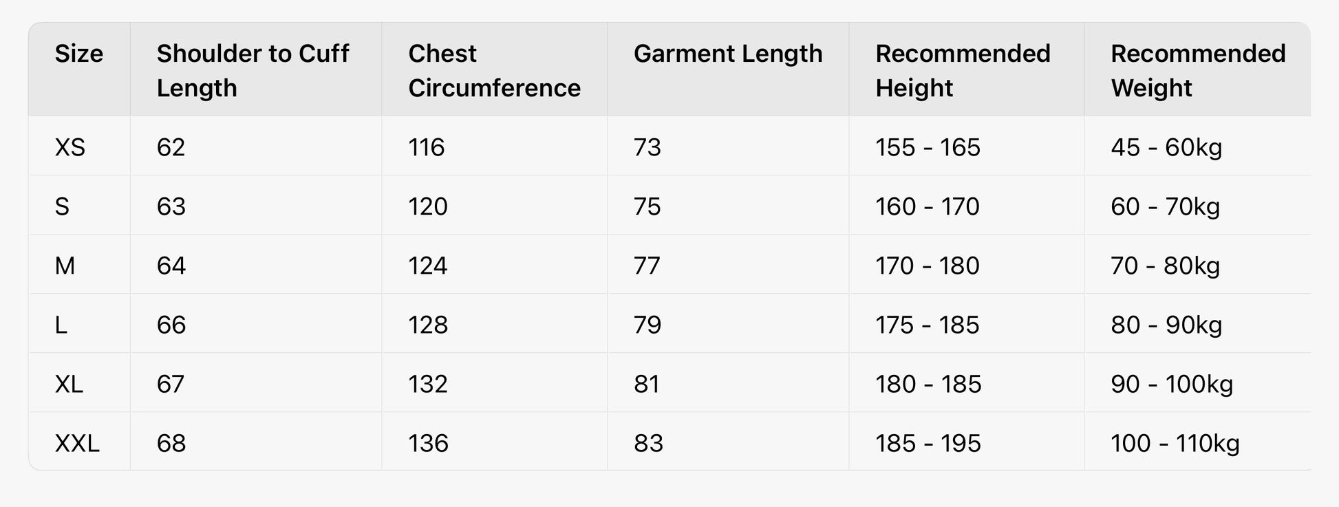 SIZE CHART